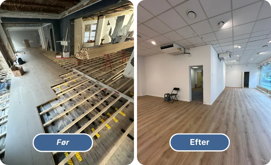 Vi tilbyder professionel erhvervsrengøring og professionel rengøring, når det giver mening, så lokalerne kan bruges igen hurtigere. En grundig rengøring er ofte nødvendig både før og efter renovering.